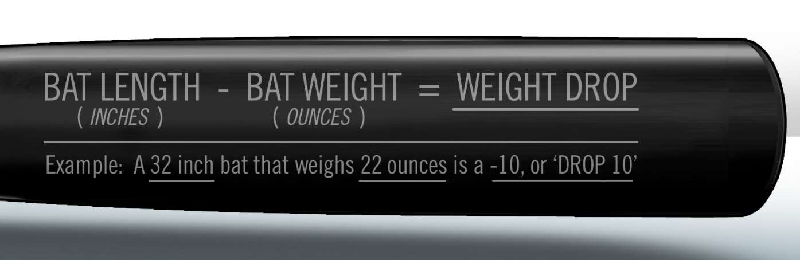 BAT LENGTH (IN.) – BAT WEIGHT (OZ.) = WEIGHT DROP